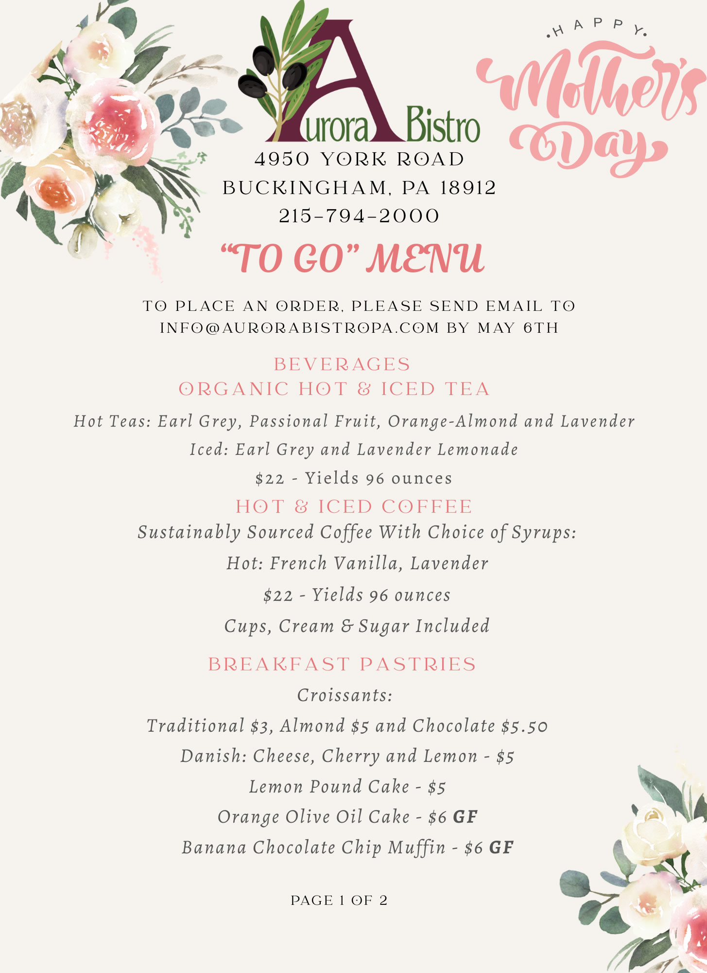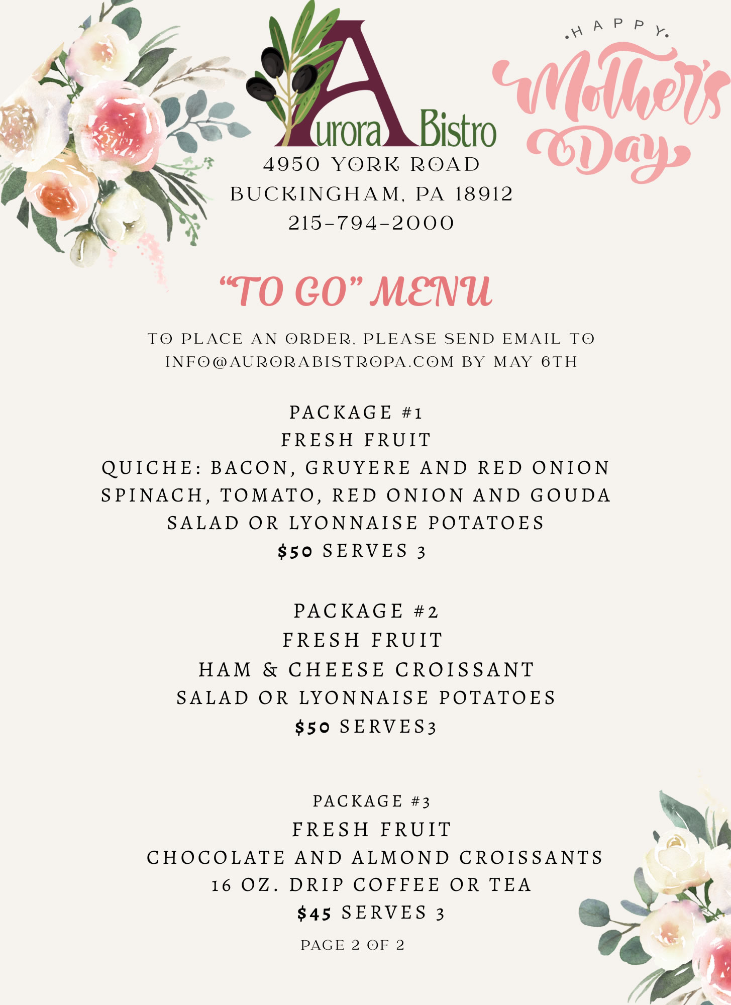 Mother’s Day To Go Menu